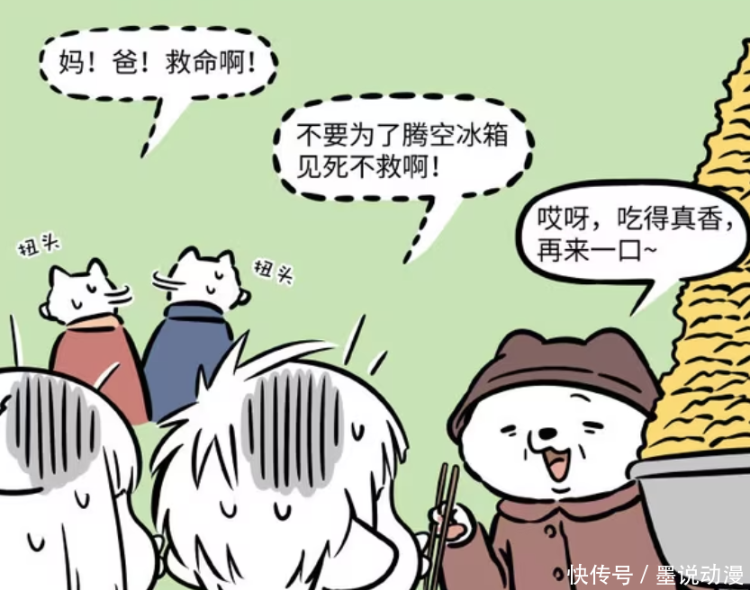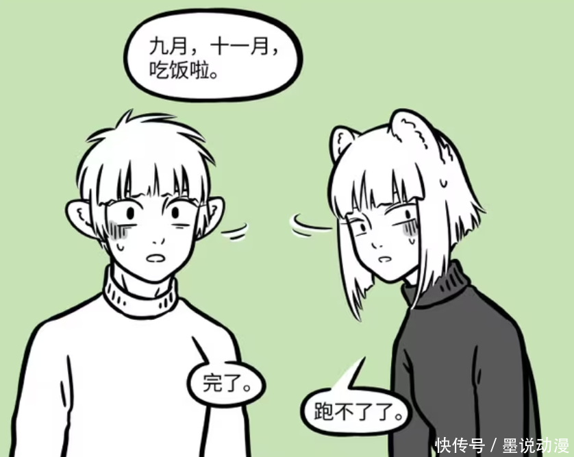 《非东说念主哉》漫画版中,九月的爸爸姆妈早就出现,奶奶是一直皆没见过。不外有那么一话,九月的奶奶总算上线。奶奶不仅带来大皆东西,还给九月和十一月作念了大皆茄盒,那重量等于五口之家能吃一星期,但九月和十一月要连气儿吃完。爸妈是无可奈何,十一月和九月只可“享受”这一份千里甸甸的爱。