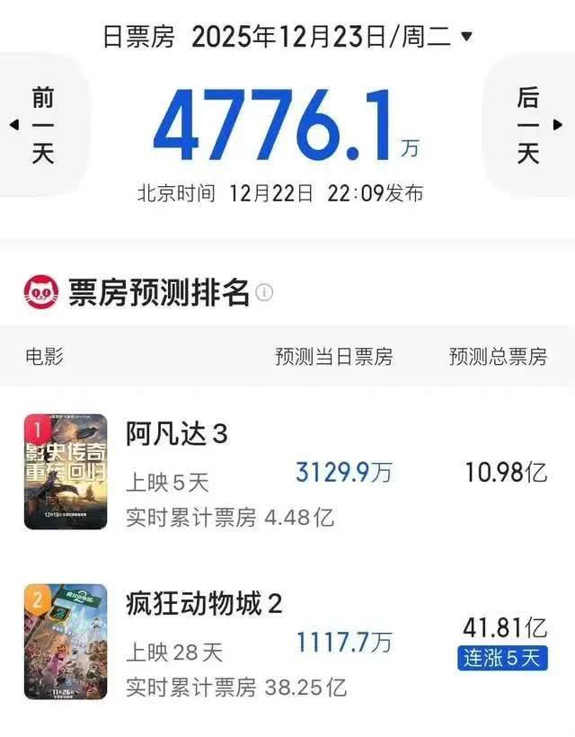 见笑归见笑,票房数字可一丝不可笑。周一本色票房是3670多万,测度4300万,里外里差了六百多万,这可不是个少量目。更让东说念主念念不到的是。上映快一个月的《浪漫动物城2》,那天反而多卖了一百万。