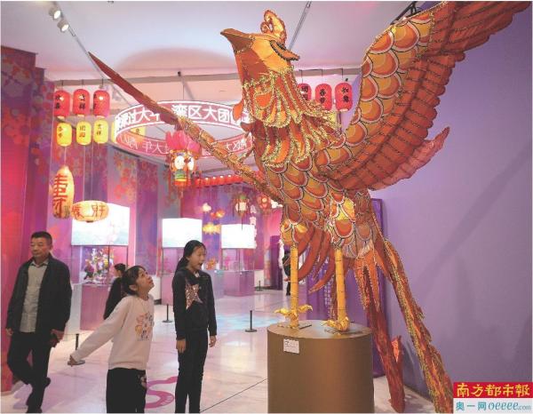 一场聚焦粤港澳大湾区非遗全貌的嘉会正在深圳关山月好意思术馆举行,展出上,一座凤凰花灯卓绝引东说念主慎重。