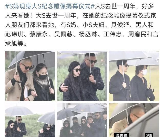 大S的揭幕典礼上,具俊晔,小S,S妈一都揭开雕像,看着大S的雕像S妈忍不住的抱着呜咽,摸着这雕像就好像又把男儿抱到了怀里!