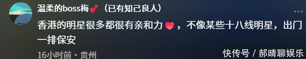 有网友觉得:香港的明星好多都很有亲和力,不像某些十八线明星,外出一瞥保安。