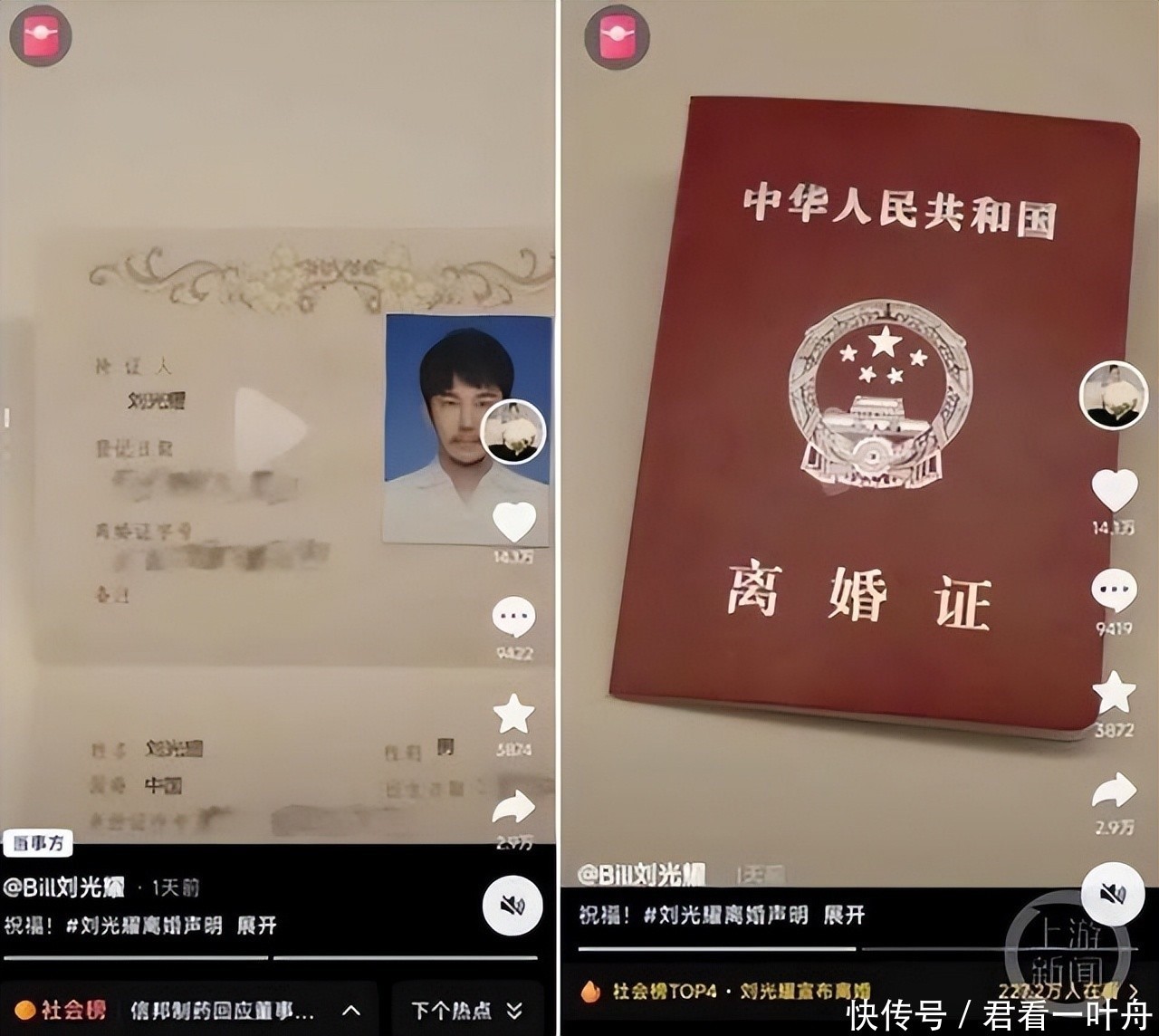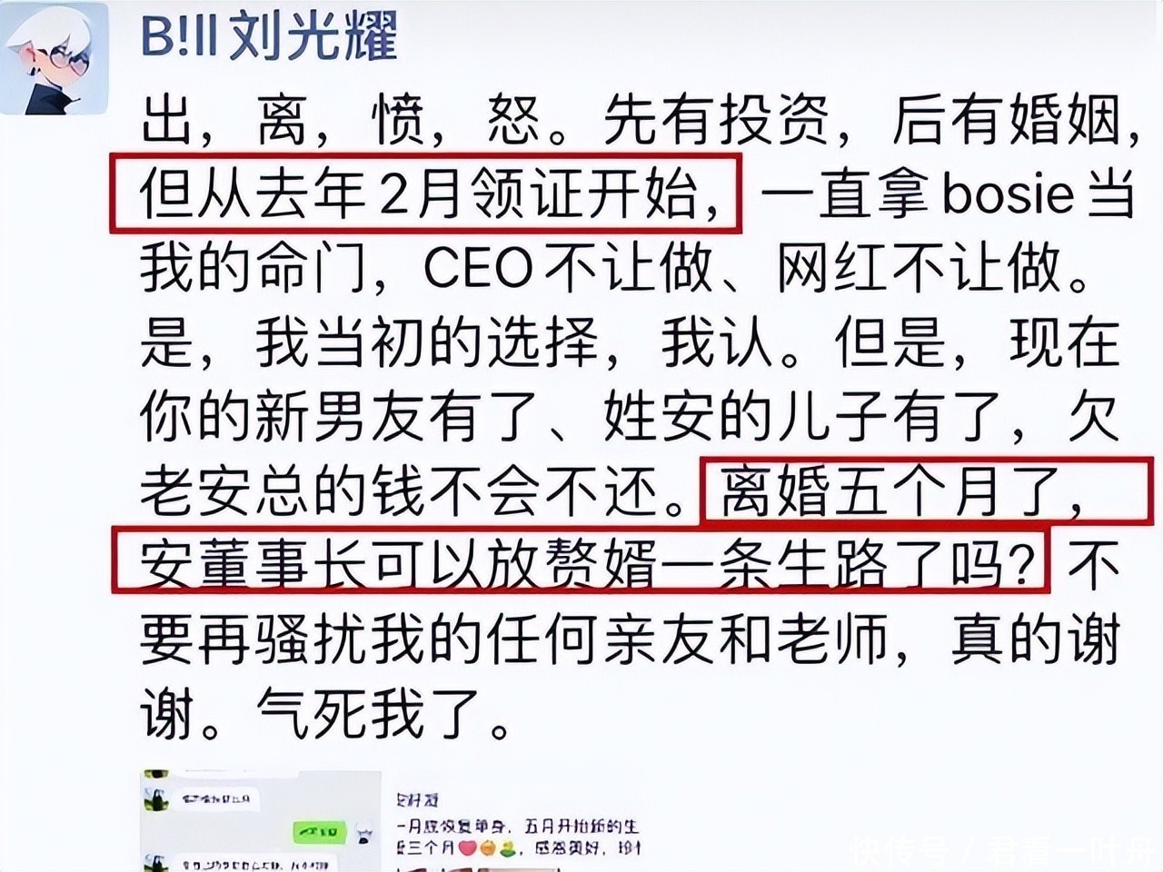 他们莫得走远,甚而差未几等于莫得走,本年8月15号的时候,刘光耀在酬酢平台超越高调地通知,我方仳离了,不外了,这日子不是东谈主过的,以后一别两宽,两边再也不见。