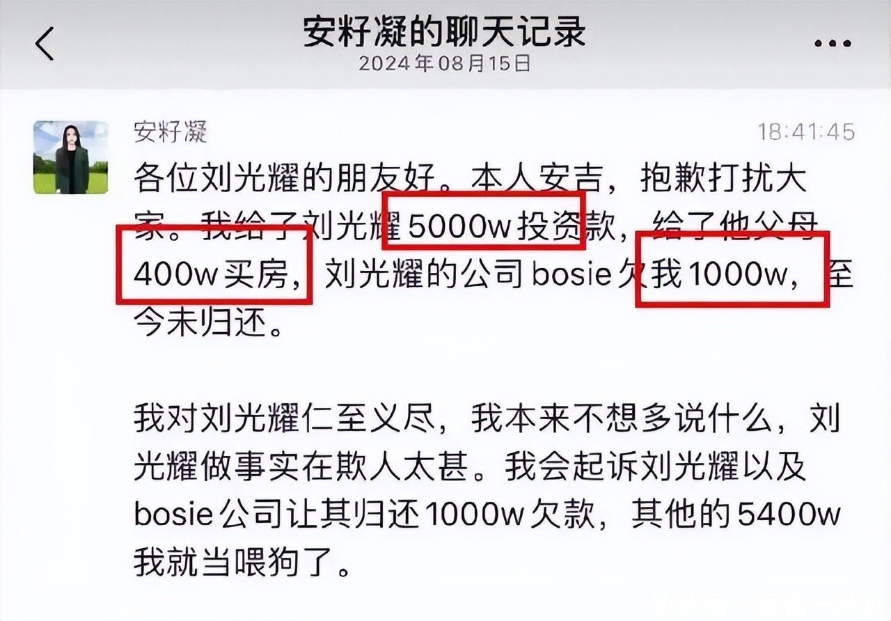 安吉父亲也以我方个东谈主的款式,给自家半子的公司借出去了1000万的款项,这些钱皆是有条约拘谨的,是以两边仳离以后,安吉随即默示,我方花的5400万元就等于是喂了狗,但欠我方老爸的钱,必须还。