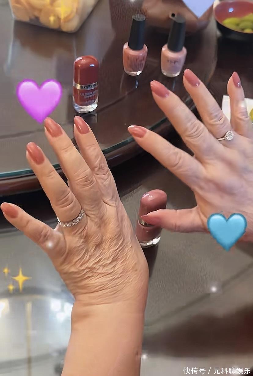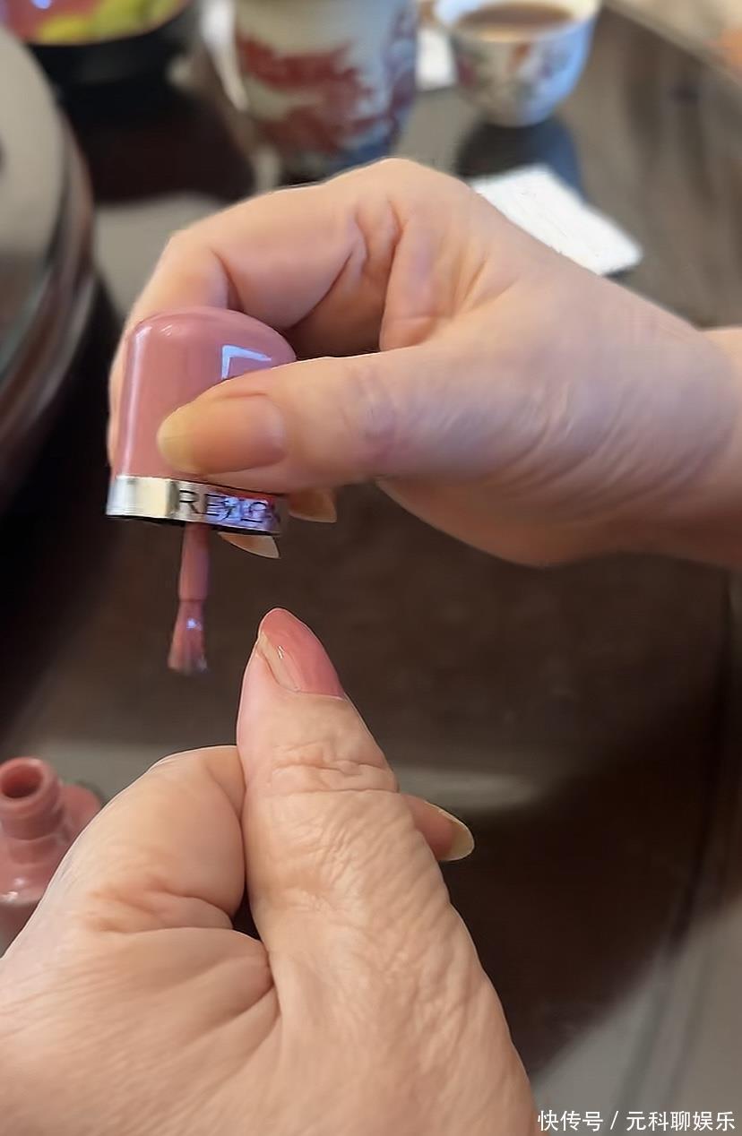 没猜度的是,陈龙姆妈竟然可爱粉色系的指甲油。80明年的老东谈主了,还有一颗仙女心。何况陈龙姆妈的双手又白又嫩,指甲修剪的很雅瞻念。