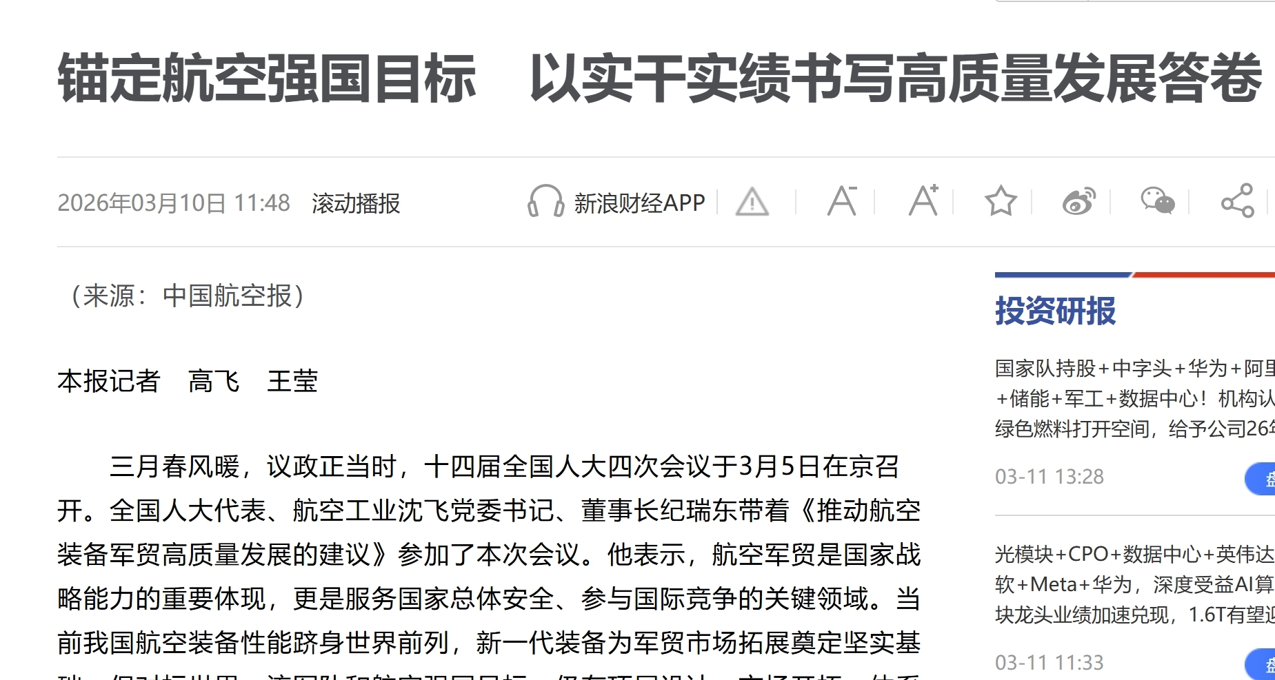 中国航空报对此的报说念