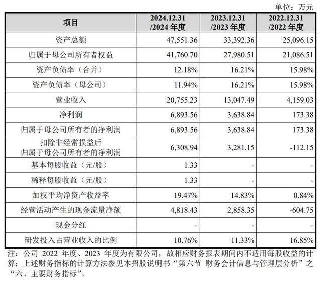 财务方面,于2022年度、2023年度及2024年度,芯密科技已矣商业收入约为4159.03万元、1.3亿元、2.08亿元东谈主民币;同时,公司已矣净利润区分为173.38万元、3638.84万元、6893.56万元东谈主民币。