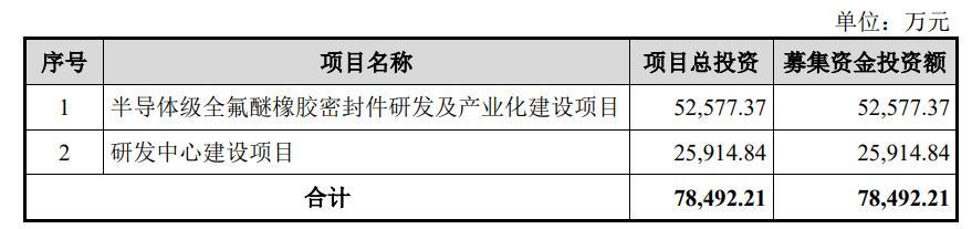 据招股书,芯密科技本次IPO拟募资7.85亿元,其中5.26亿元用于半导体级全氟醚橡胶密封件研发及产业化建树口头,2.59亿元用于研发中心建树口头。