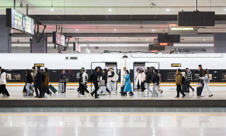 11月28日,游客在上海虹桥火车站站台上行走。新华逐日电讯记者 丁汀摄上昼十点十五分,上海虹桥火车站启程层,赵先生准备安检,他午饭前就能抵达苏州。“当今去苏州开会就像在市内通勤,最快21分钟就能到达。”他大开手机App中的行程订单说,“这周如故第三次去苏州了,长三角的产业协同越来越直快。”
